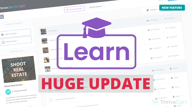 We’re excited to announce the release of major new functionality for ThriveCart – ThriveCart Learn.